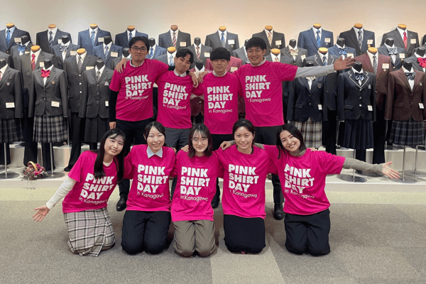学校制服を取り扱う企業として、教育現場に関わるすべてのひとがいじめの無い、安心して過ごせる社会への一助となるべく、このピンクシャツデー運動に賛同いたしました。